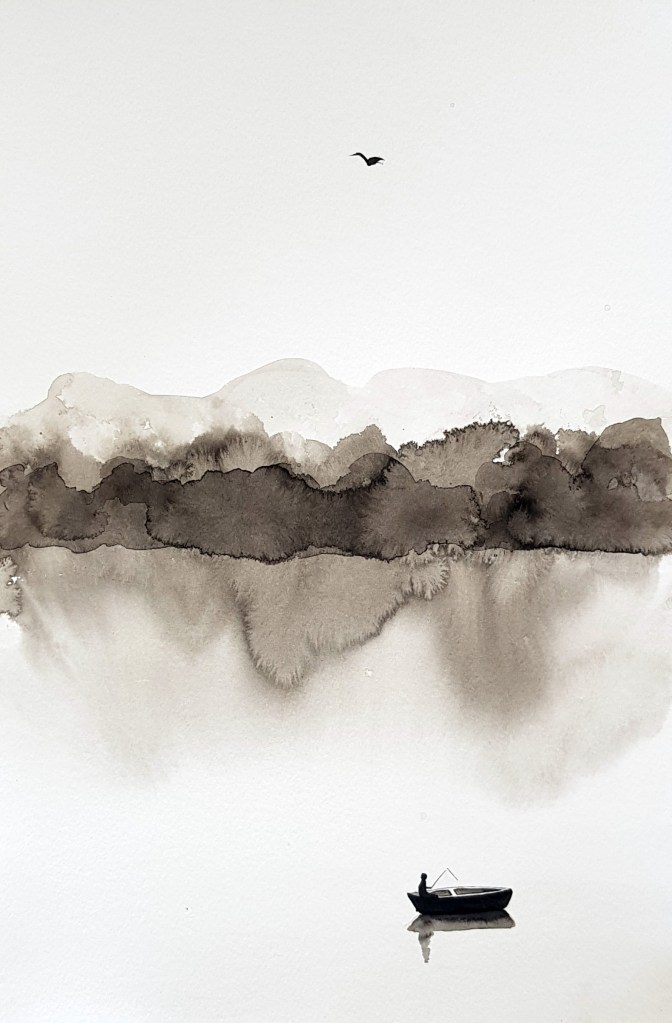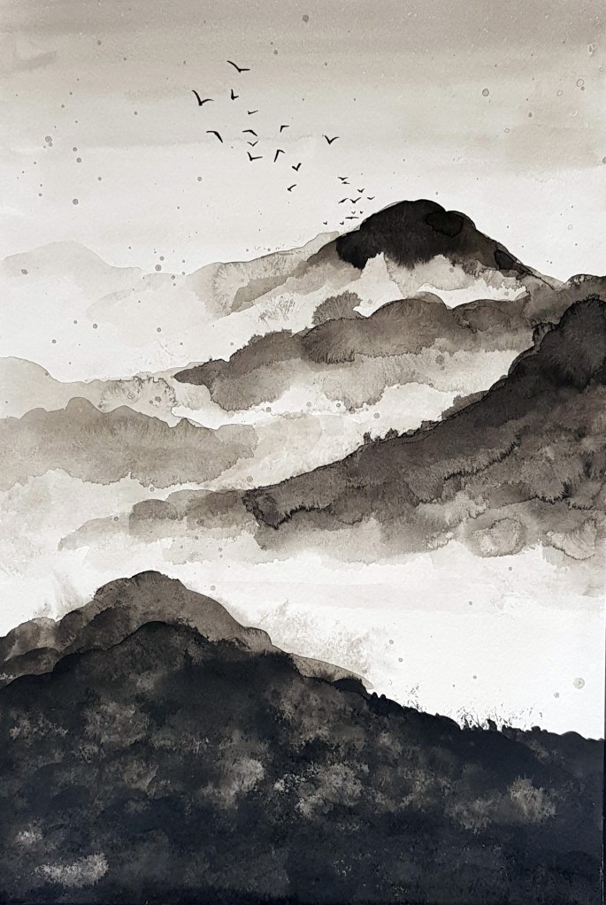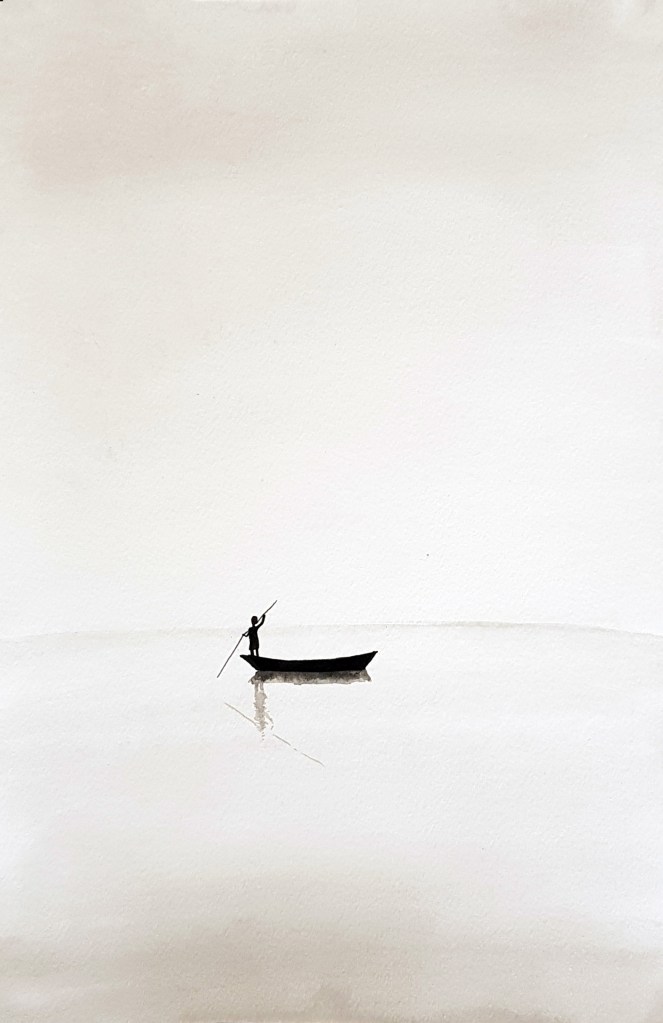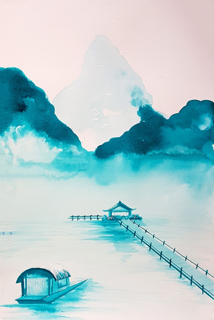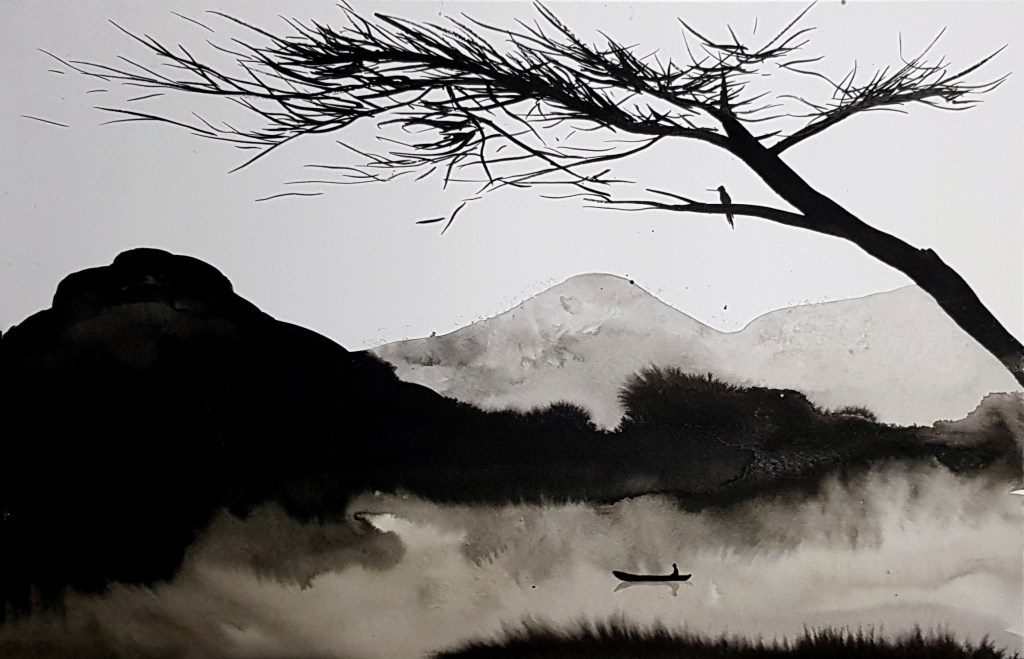 Chinese inspired paintings in India ink have become the artist’s well known art style. This collection represents a small collection of hundreds of paintings exploring minimalist approaches to paintings with a focus on minimal brushstrokes to create form and texture.