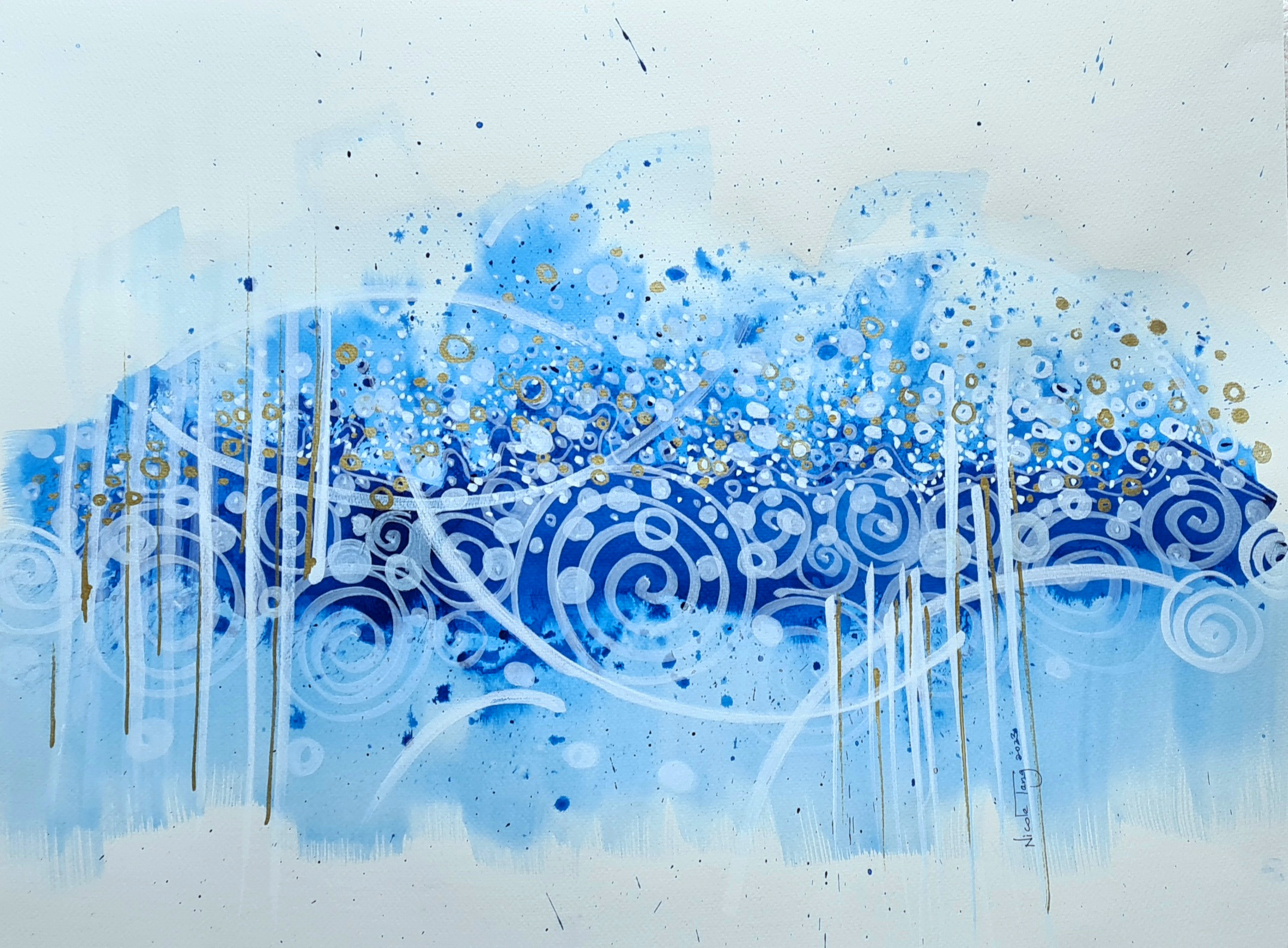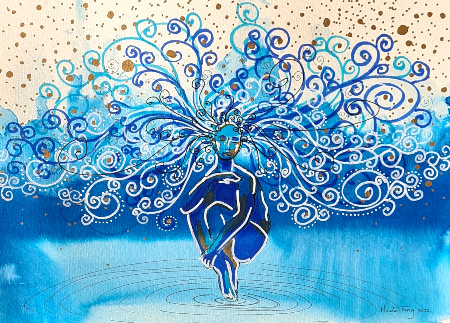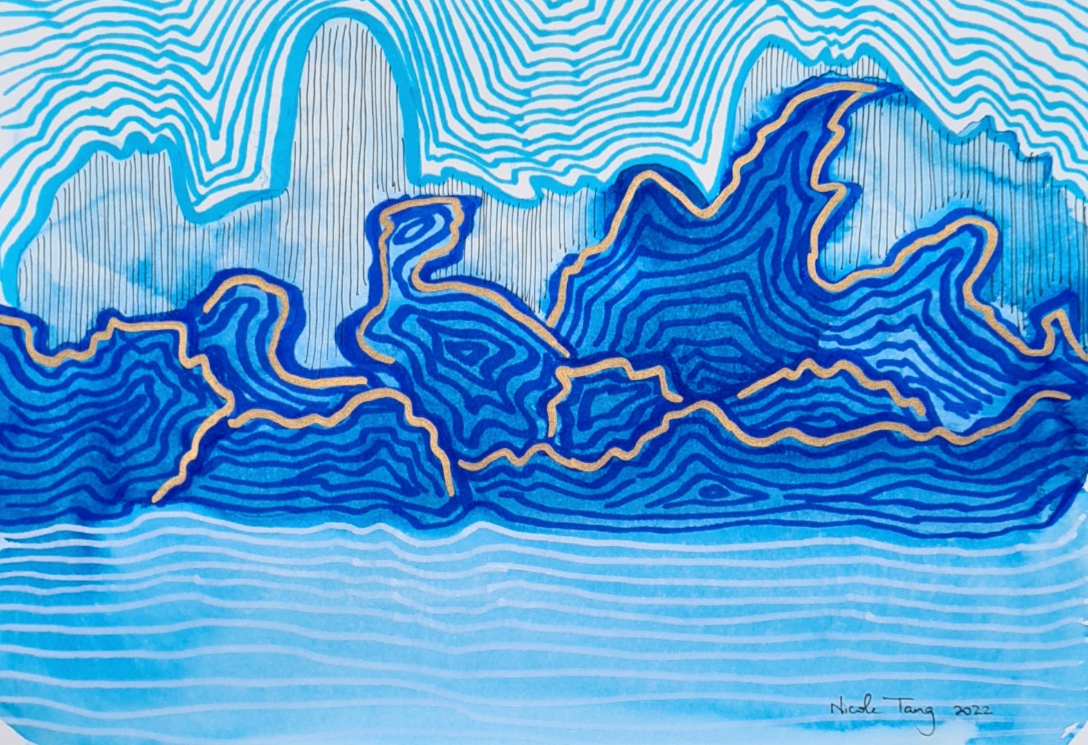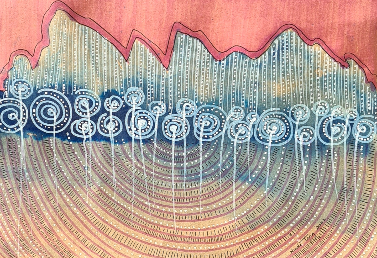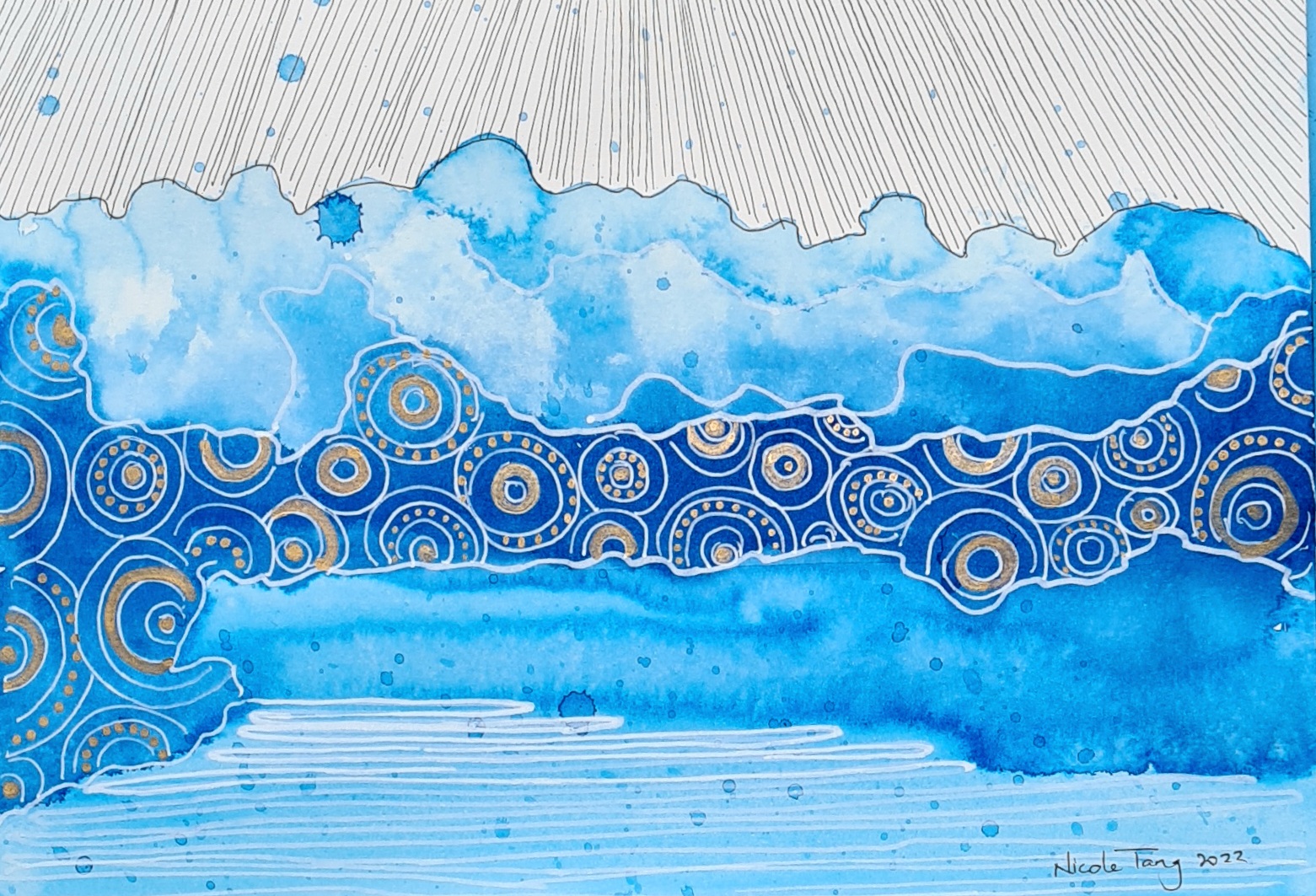 A beautiful collection of over 75 new chinese ink paintings with a new style blossoms in this body of work. Inspired by the artist’s travels to Europe and exploring many art galleries and museums, the artist seeks a more contemporary approach to her paintings with overlays of illustrations on the ink paintings to explore the abstraction in the work. The overlays of white, gold and blue are playful experiments on meditation and liberation which are involved in the process of creation. While meditation involves focus, liberation involves letting go and focuses on the spontaneous.