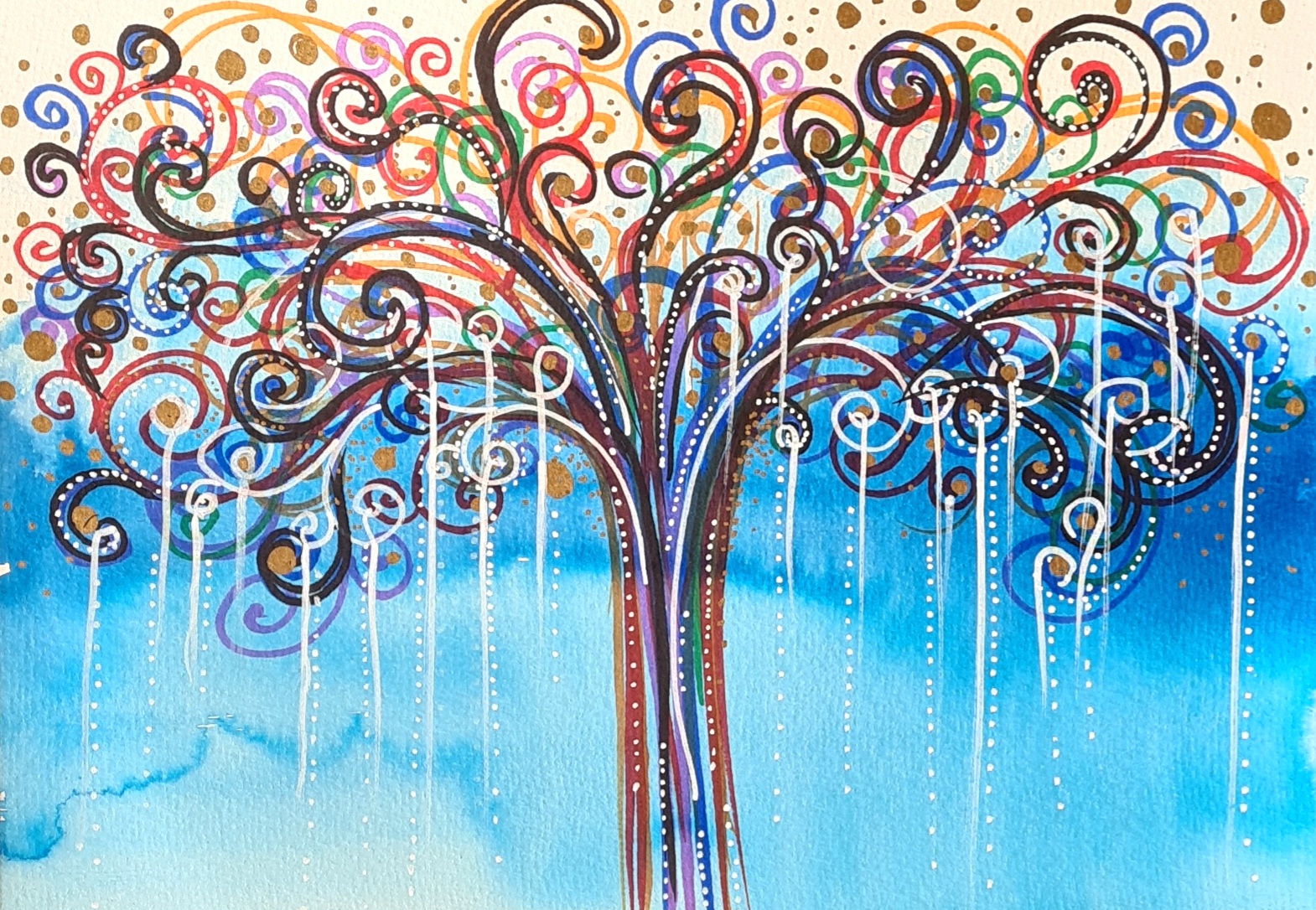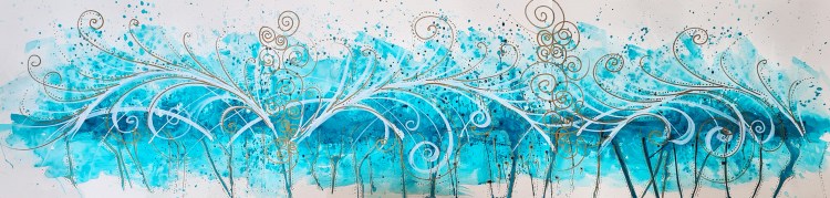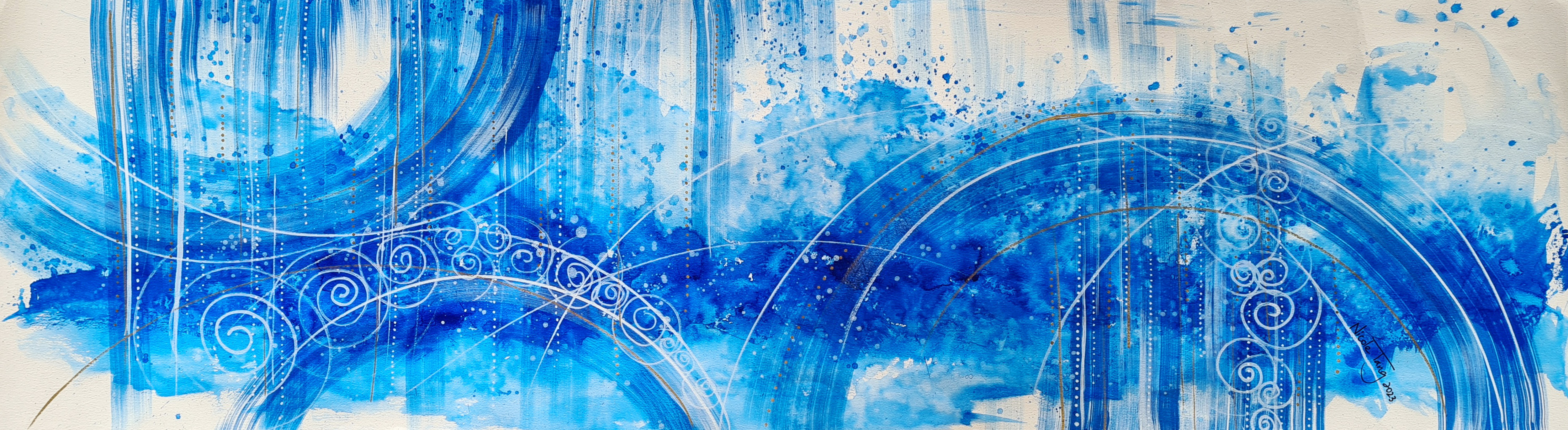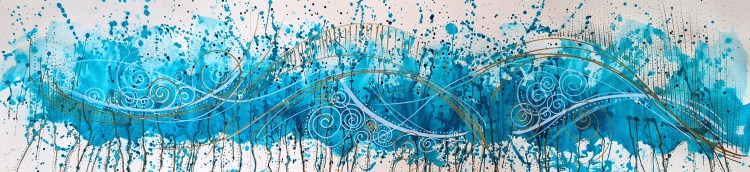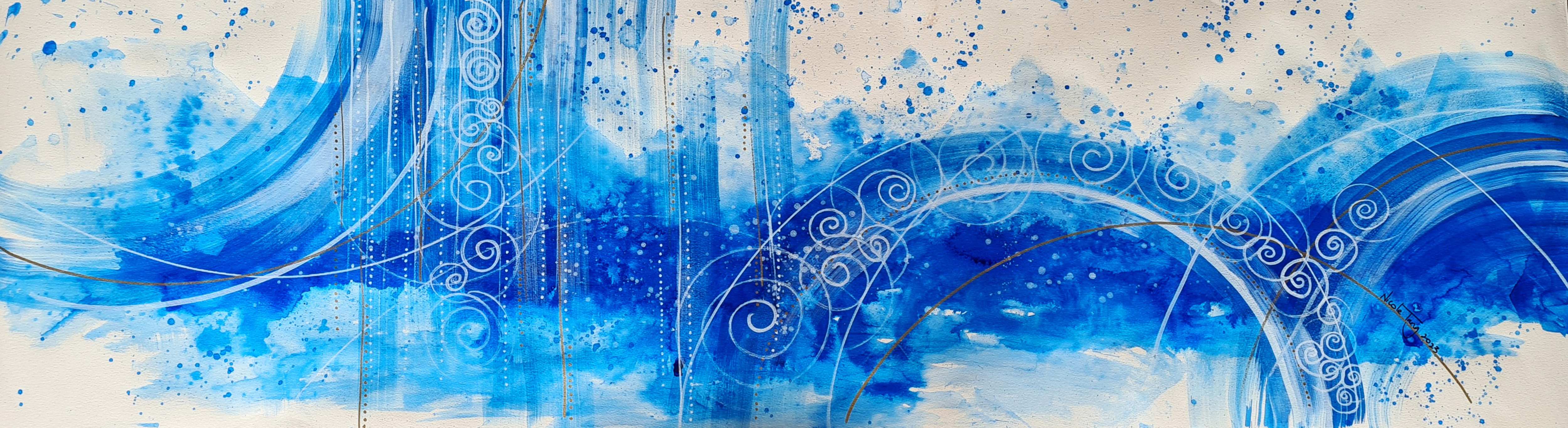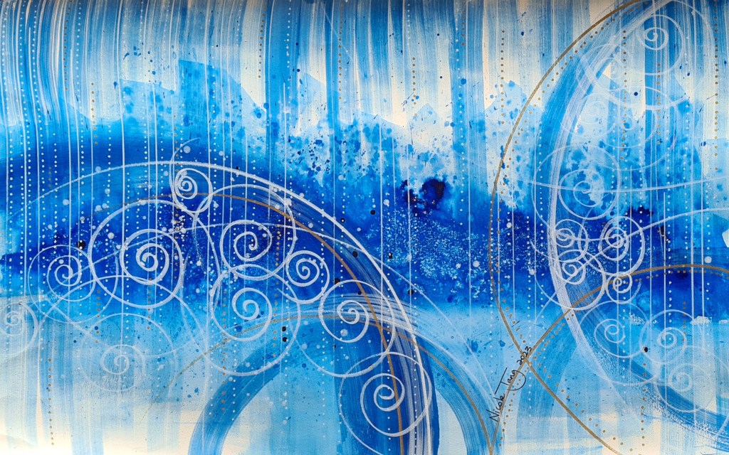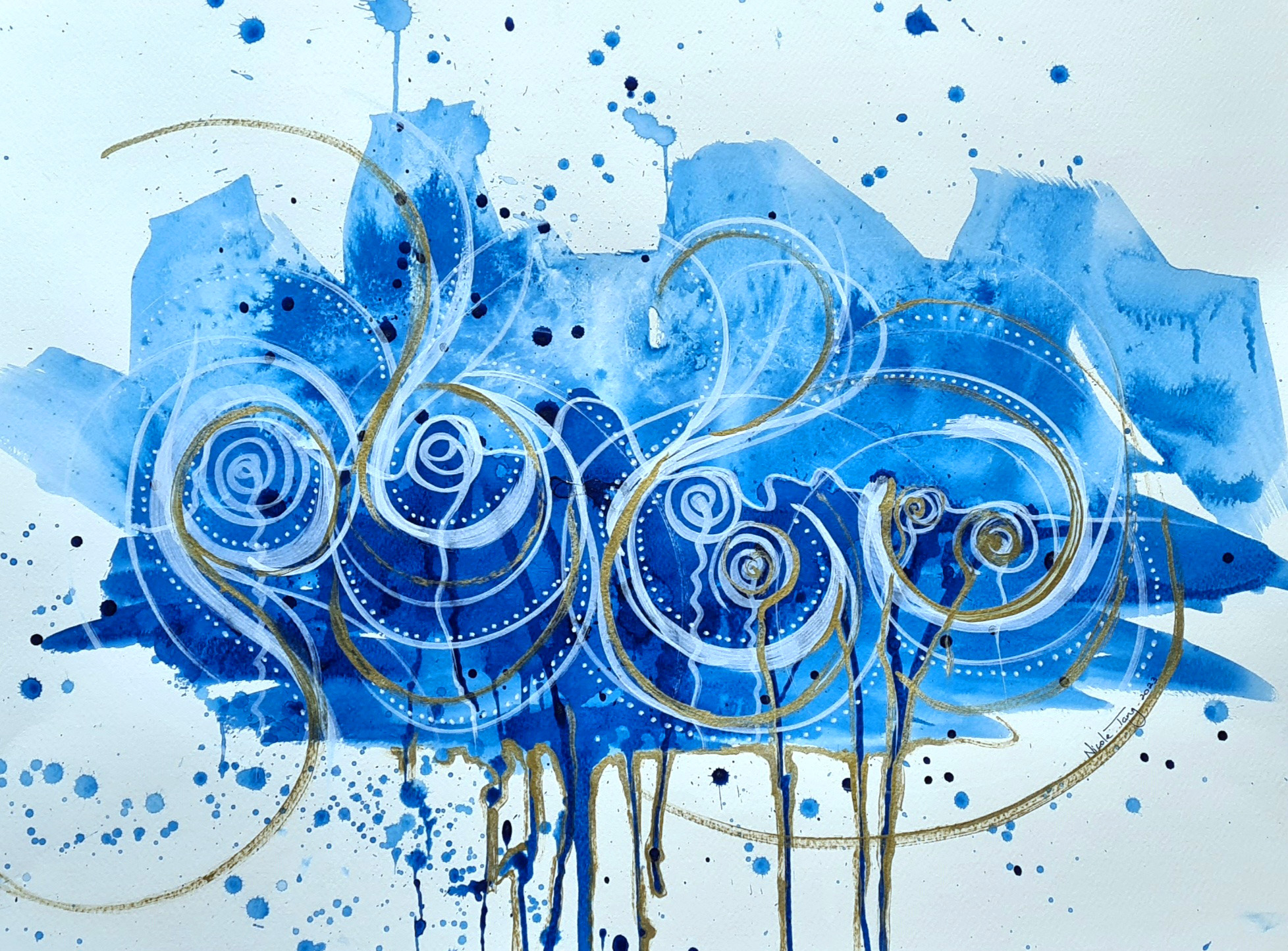 A beautiful collection of over 75 new chinese ink paintings with a new style blossoms in this body of work. Inspired by the artist’s travels to Europe and exploring many art galleries and museums, the artist seeks a more contemporary approach to her paintings with overlays of illustrations on the ink paintings to explore the abstraction in the work. The overlays of white, gold and blue are playful experiments on meditation and liberation which are involved in the process of creation. While meditation involves focus, liberation involves letting go and focuses on the spontaneous.