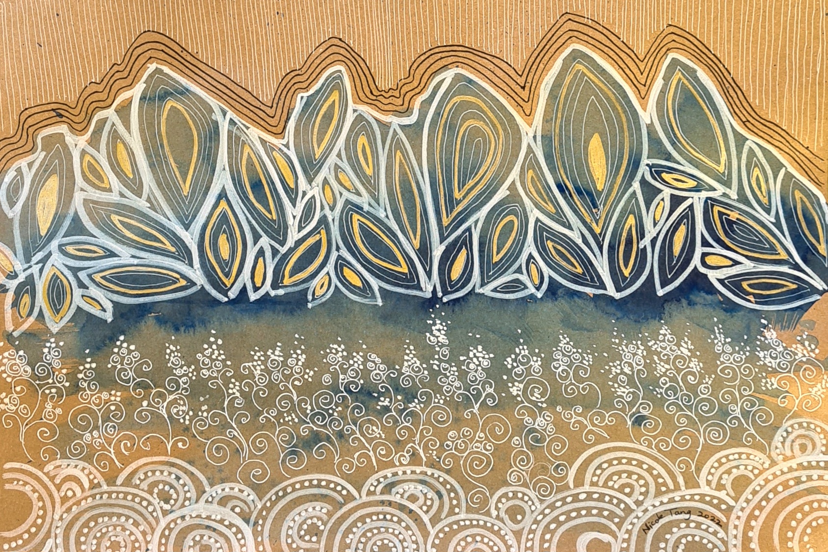 Mixed media on paper. 8.3″ x 11.7″. November 2022.