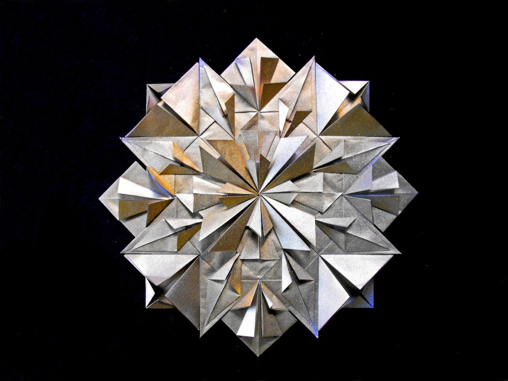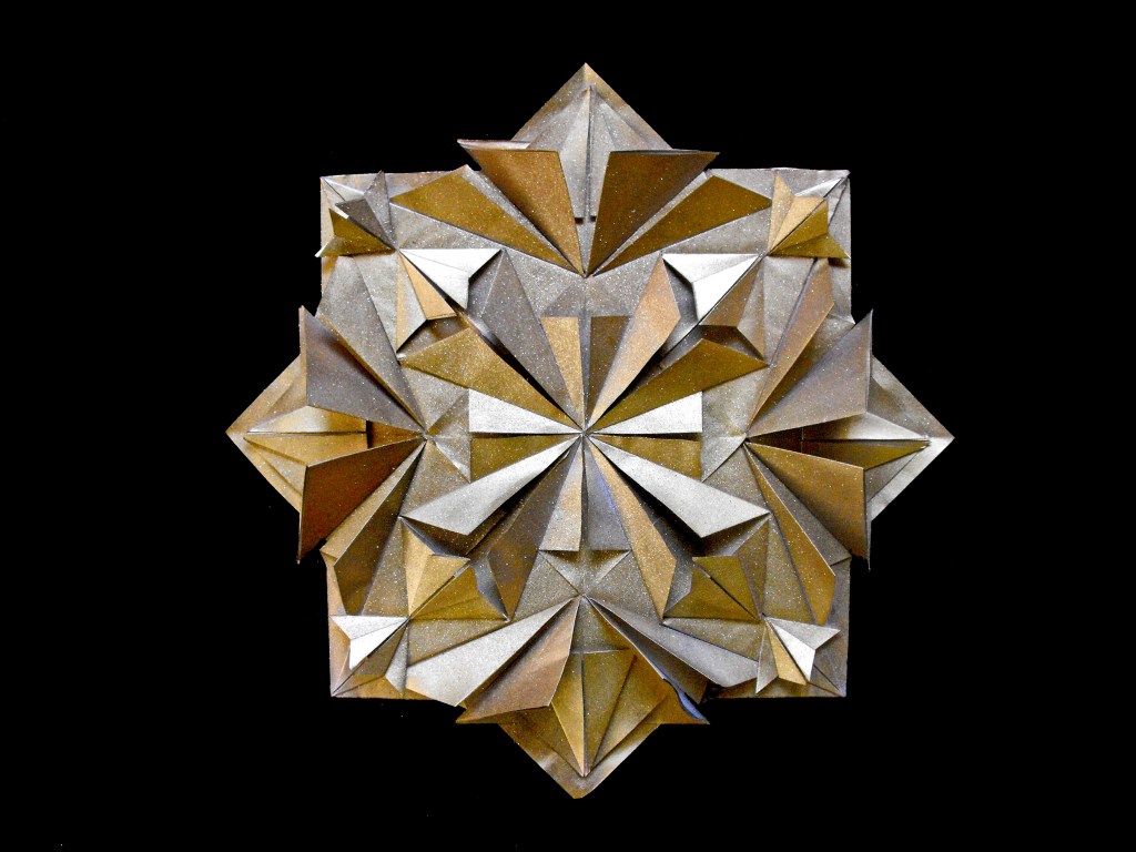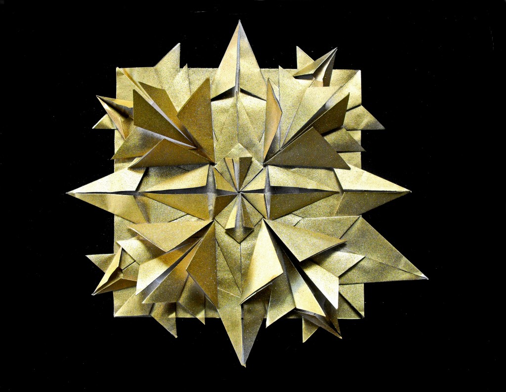The artist’s childhood love for paper folding is explored here in these mandala designs. The process of folding paper is limitless in creating designs, very similar to mandalas which possess a limitless potential in its division of symmetry. There is a focus on geometry, symmetry, shapes and simplicity of repeated shapes to create forms, textures and designs. This collection of six inspired a collection of geometric acrylic paintings.