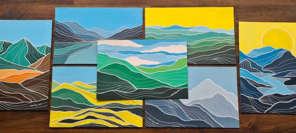 “Transitions in the seasons relate to emotions. They come and go and do not last forever. I’ve personified the mountains as something alive with emotions. “