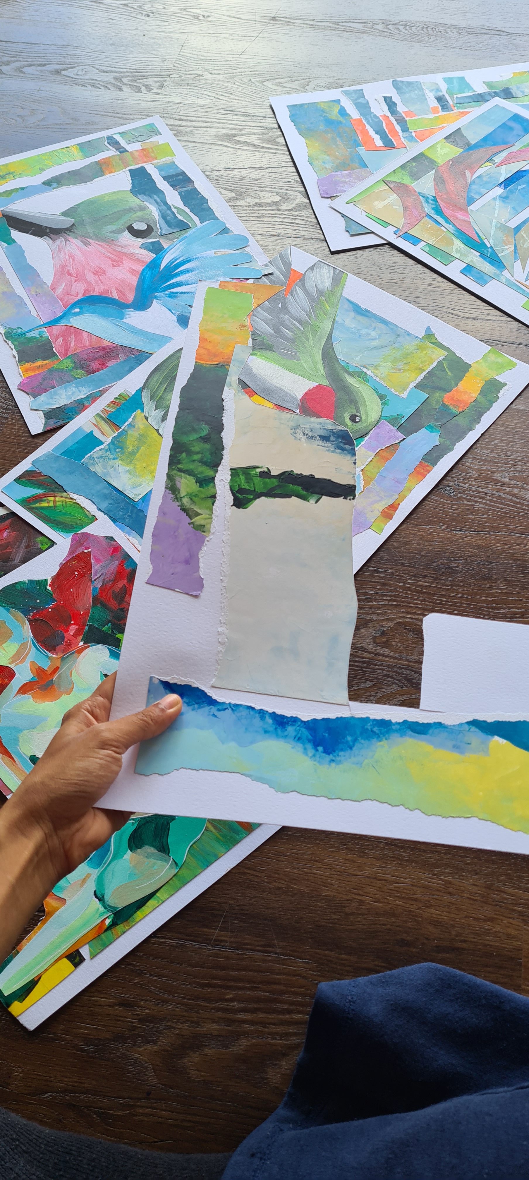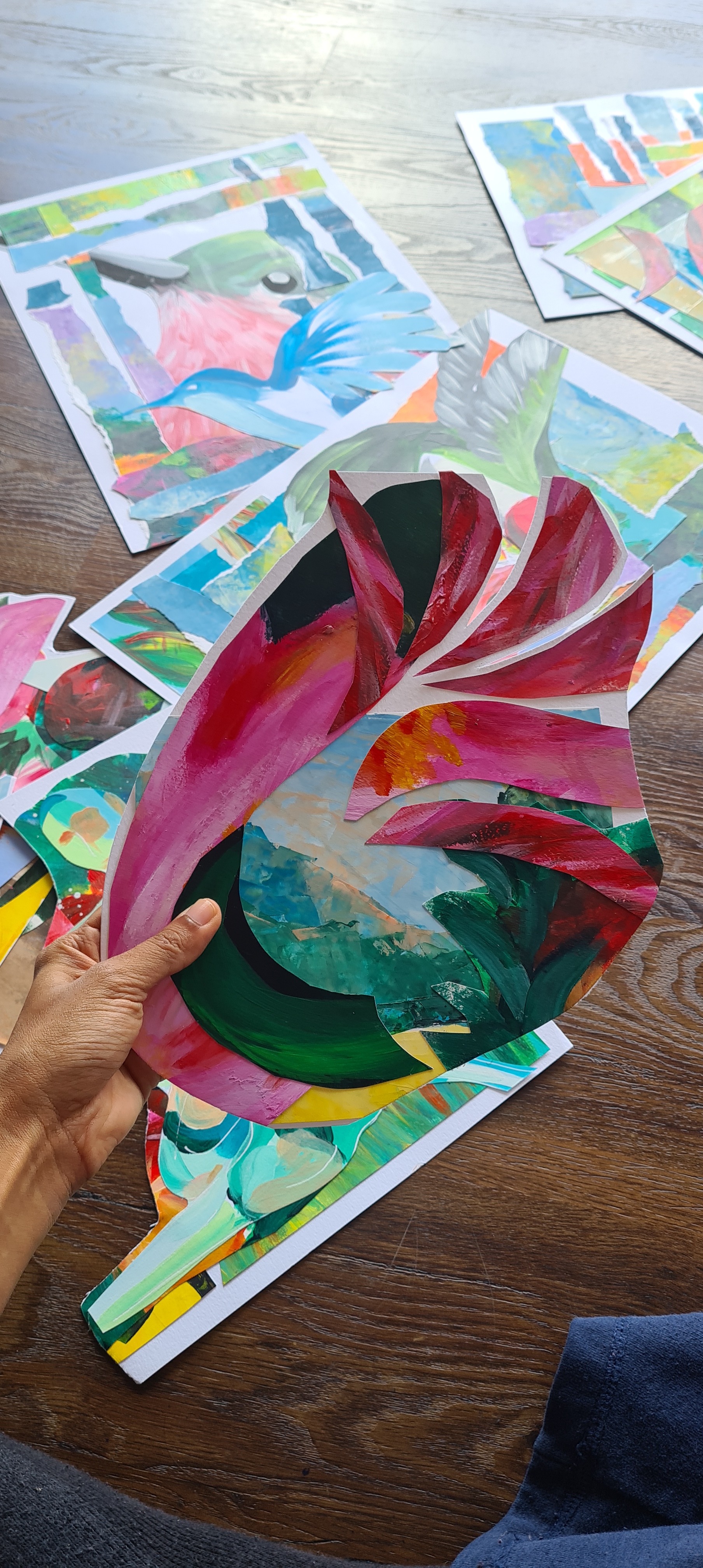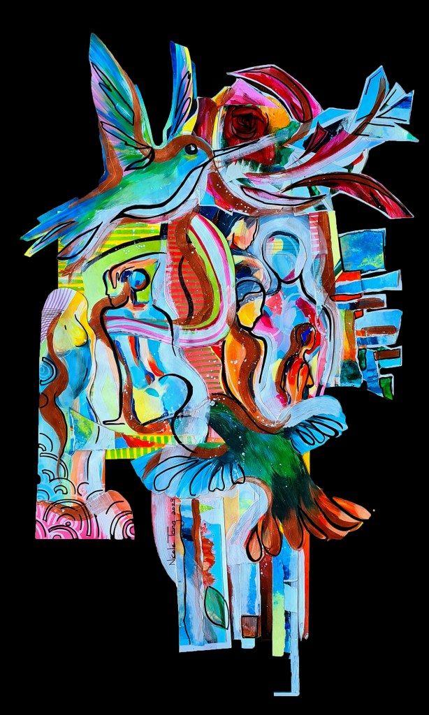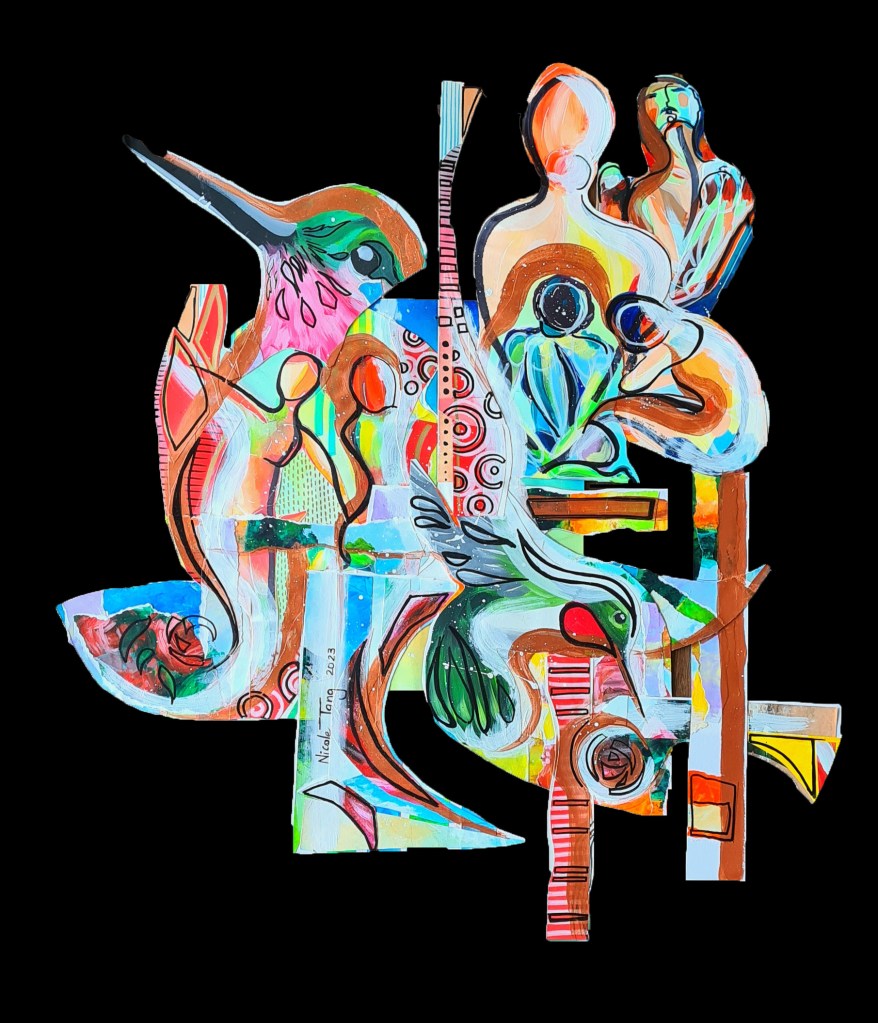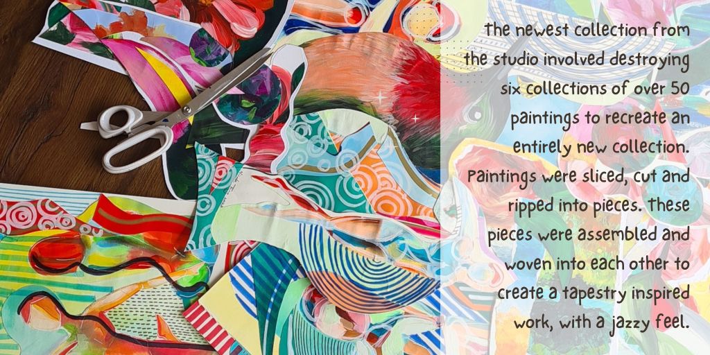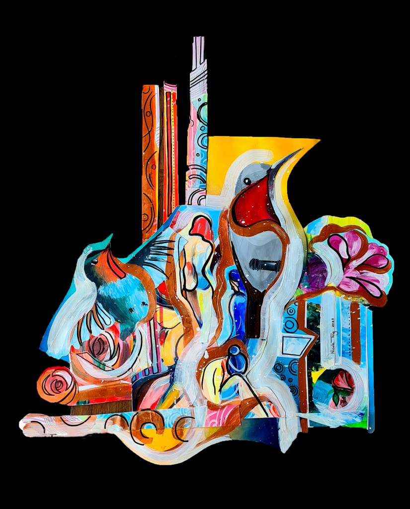 The new collection that has arisen from these transformative acts of destruction tells a powerful story. It is a narrative of creative evolution, reflecting the artist’s growth and evolution as an individual and creator. Vibrant bird motifs soar across the canvas, carrying a sense of freedom and possibility. They reveal an artist who has shed the constraints of the past and embraced a more intuitive and expressive artistic approach.