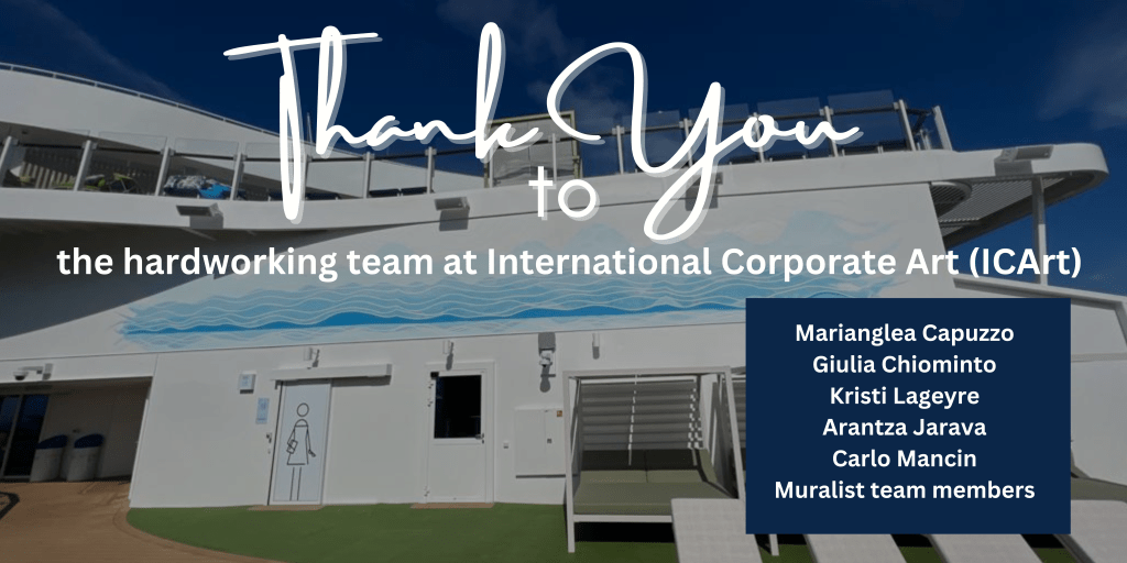 This collection of outdoor mural designs visually speaks about the fusion of the ocean with the horizon, into the mountains and clouds. The repetitive upward linear designs are movements of feeling high, but in a blissful and and calming way, while guests relax in the pool of the Swim and Tonic area. The cohesive designs flows from Cloud 17 to the Royal Loft and finally to the Swim and Tonic Deck.