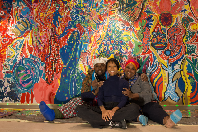 She created several designs based on a central image from significant works of art by Hospedales, considering the aesthetic and design of the deck. She used specific motifs, patterns and designs from various paintings in Hospedales’ collection to recreate an entirely new composition. She maintained the aesthetic of Hospedales’ unique art style to create a truly iconic and unique work of art for the guests of the Suite Sun Deck.